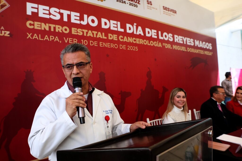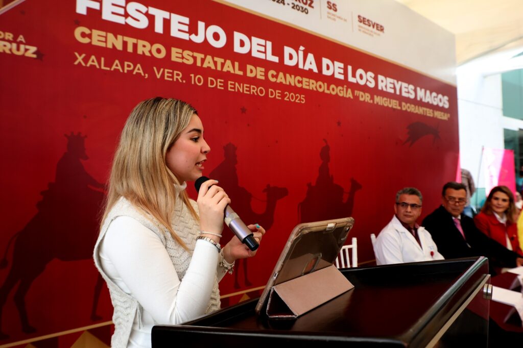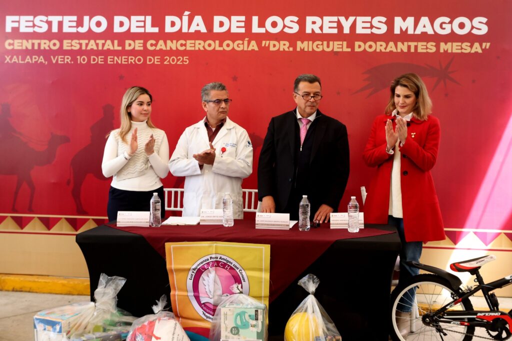 Xalapa, Ver.- A fin de brindar alegría y entusiasmo a pacientes pediátricos durante su atención médica, la Secretaría de Salud, en conjunto con la Asociación Lepach, llevó a cabo el Festejo del Día de los Reyes Magos en la explanada del Centro Estatal de Cancerología (CECAN) «Miguel Dorantes Mesa».