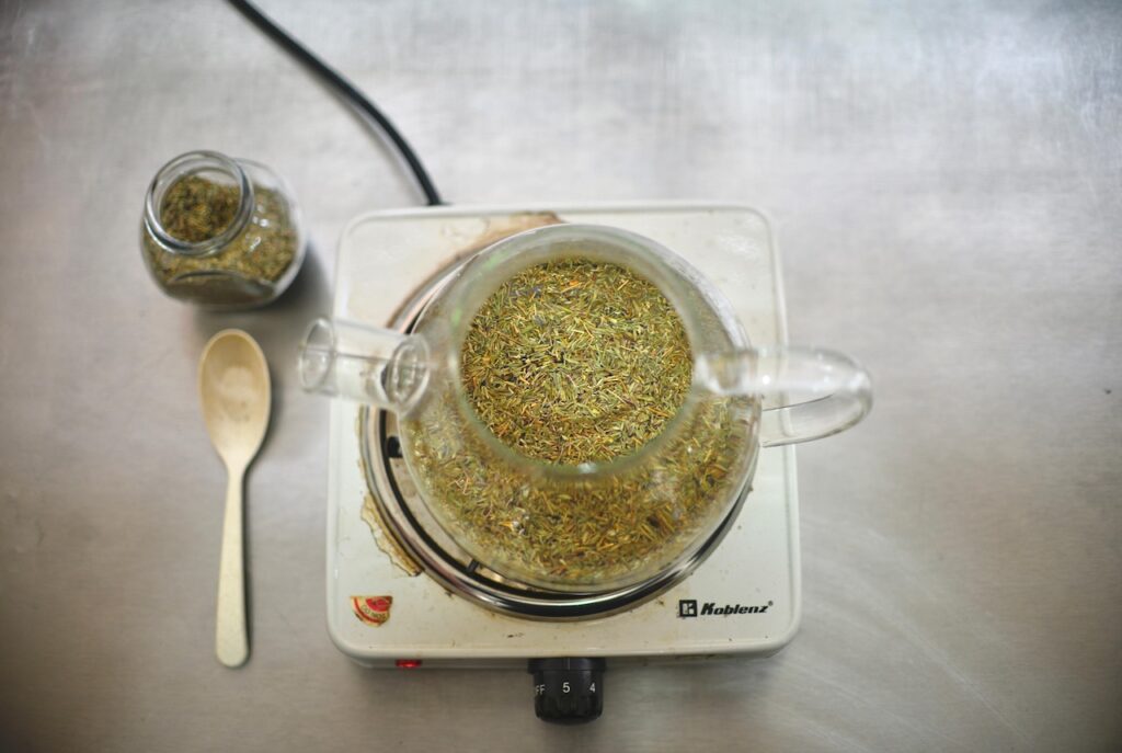 1.-Hervir un litro de agua durante 20 minutos y agregar 100 gramos de tomillo.