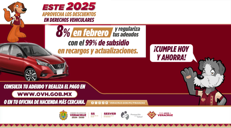 Durante el mes de febrero, las y los contribuyentes que realicen el pago del Derecho de Control Vehicular obtendrán un 8% de descuento.