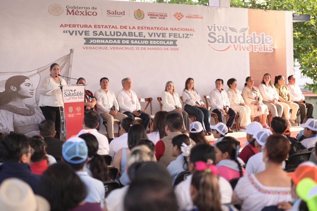 Veracruz, Ver., miércoles 12 de marzo de 2025.- La gobernadora Rocío Nahle García encabezó el inicio de la implementación estatal de la estrategia Vive Saludable, Vive Feliz, una iniciativa de la presidenta Claudia Sheinbaum Pardo que busca mejorar la calidad de vida de la niñez en su etapa escolar.