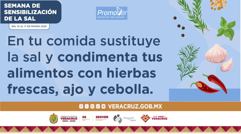 Prevención Evita poner el salero martes 18 de marzo de 2025709 Views Evita poner el salero sobre la mesa , así empezarás a consumir menos sal . ¨PromoVer menos sal, más corazón¨ #PorAmorAVeracruz#PromoVer#Sal Ver enlace original