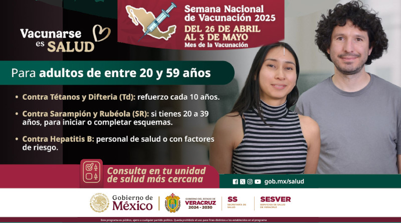 Refuerza tu salud durante la #SemanaNacionalDeVacunación, con las vacunas contra: