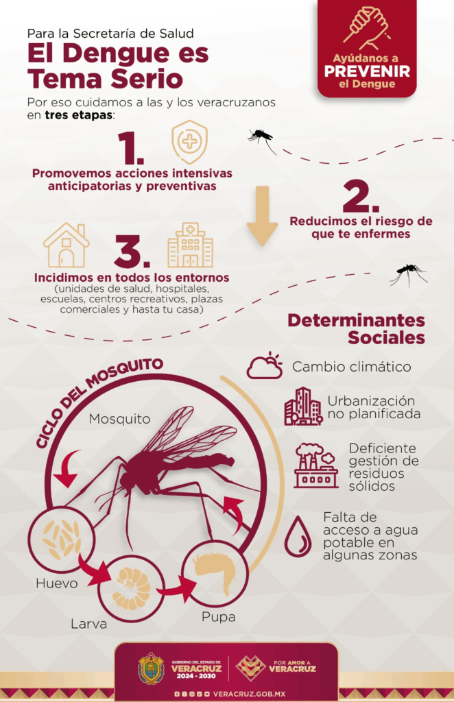 En la Secretaría de Salud de Veracruz , el #Dengue es tema serio. Por ello, llevamos a cabo diversas acciones intensivas anticipatorias y preventivas para reducir el riesgo de que te enfermes.