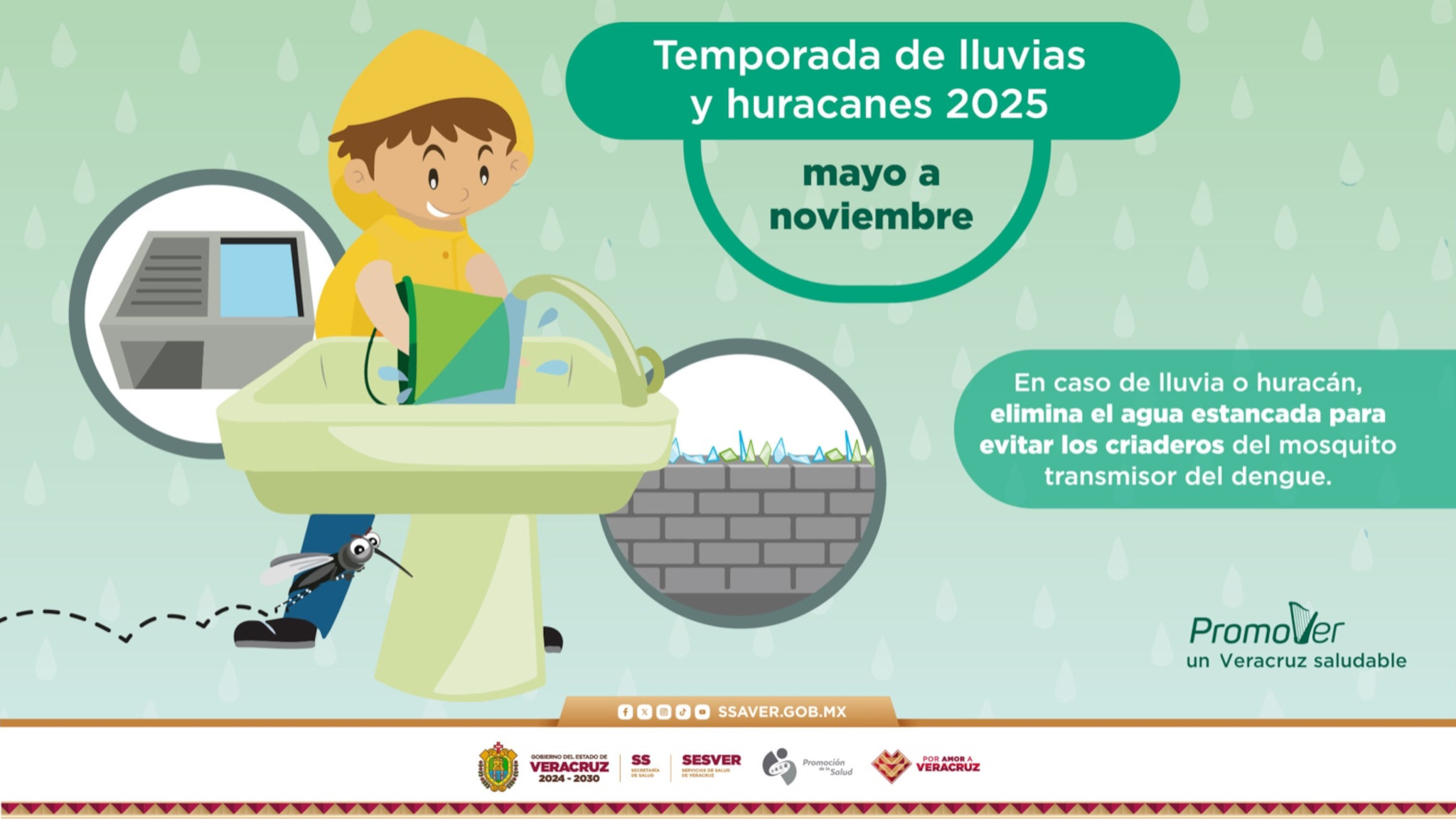 Para prevenir el dengue, en época de lluvia, deshazte de todos los recipientes que puedan acumular agua.