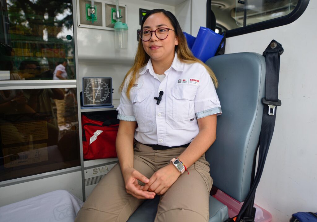 El paramédico Ángel Manuel Salas Cabrera, técnico en urgencias médicas, explica que reciben llamadas al 911, valoran vía telefónica y, si es necesario, activan una ambulancia con personal capacitado para asistir de manera inmediata; “damos seguimiento hasta que el paciente recibe atención hospitalaria”, enfatizó.