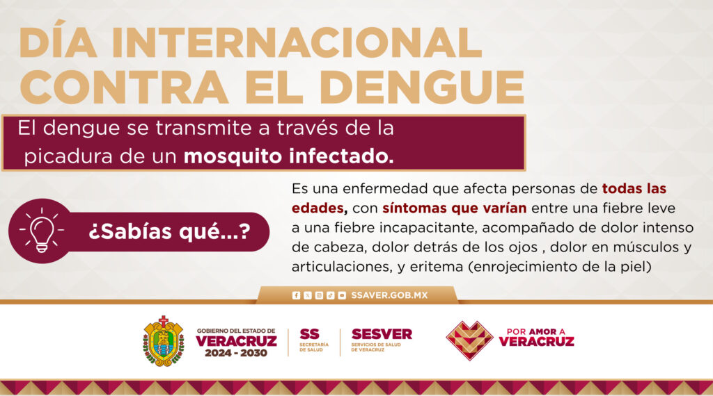 Esta enfermedad se transmite únicamente por la picadura de un mosquito hembra infectado con el virus y puede afectar a personas de todas las edades.