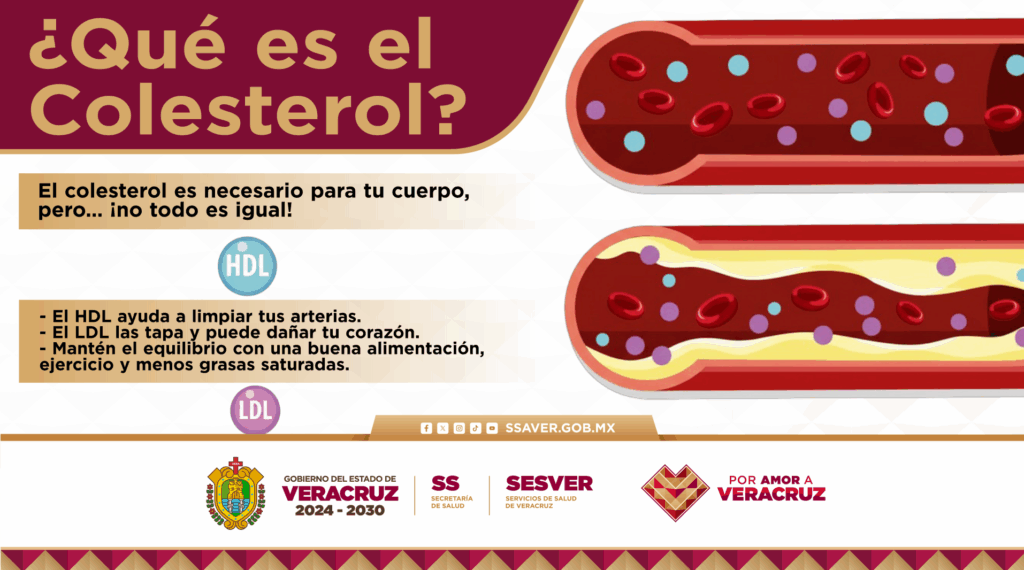 GeneralPrevención El colesterol es necesario para tu cuerpo, pero… ¡no todo es igual! martes 23 de septiembre de 2025353 Views El HDL ayuda a limpiar tus arterias. El LDL las tapa y puede dañar tu corazón. Mantén el equilibrio con una buena alimentación, ejercicio y menos grasas saturadas. #DíaMundialDelColesterol
