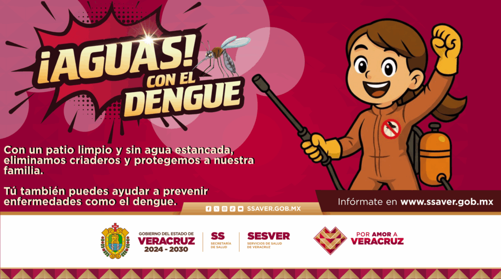 ¡Aguas! con el dengueGeneralPrevención Patio limpio, criadero extinto miércoles 1 de octubre de 2025804 Views Tú también puedes ayudar a prevenir enfermedades como el dengue. Infórmate en www.ssaver.gob.mx