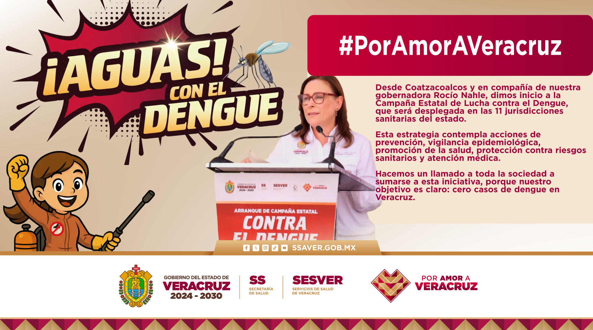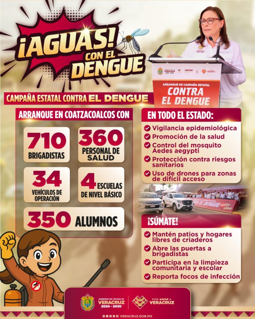 Desde Coatzacoalcos y en compañía de nuestra gobernadora Rocío Nahle, dimos inicio a la Campaña Estatal de Lucha contra el Dengue, que será desplegada en las 11 jurisdicciones sanitarias del estado.