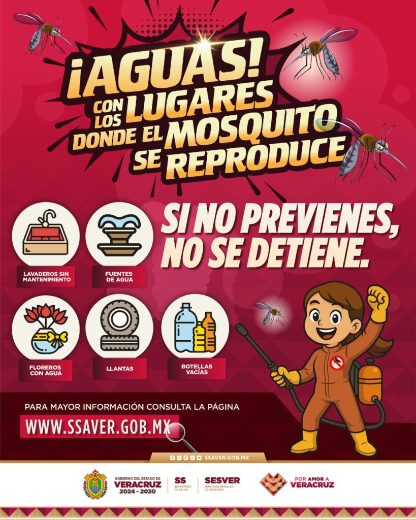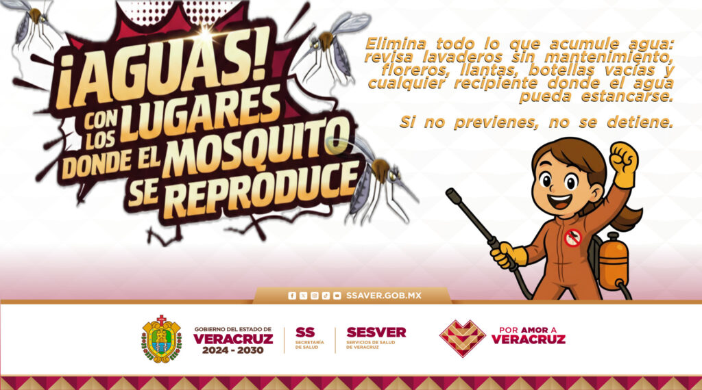 ¡Aguas! con el dengue Si no previenes, no se detiene jueves 9 de octubre de 2025280 Views Elimina todo lo que acumule agua: revisa lavaderos sin mantenimiento, floreros, llantas, botellas vacías y cualquier recipiente donde el agua pueda estancarse.