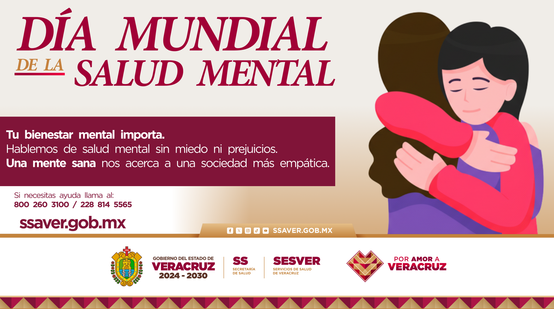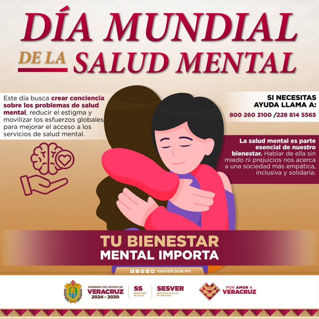 EfeméridesGeneral Tu bienestar mental importa lunes 13 de octubre de 2025215 Views Hablemos de salud mental sin miedo ni prejuicios. Una mente sana nos acerca a una sociedad más empática. – Si necesitas ayuda llama al: 800 260 3100 / 228 814 5565 – ssaver.gob.mx