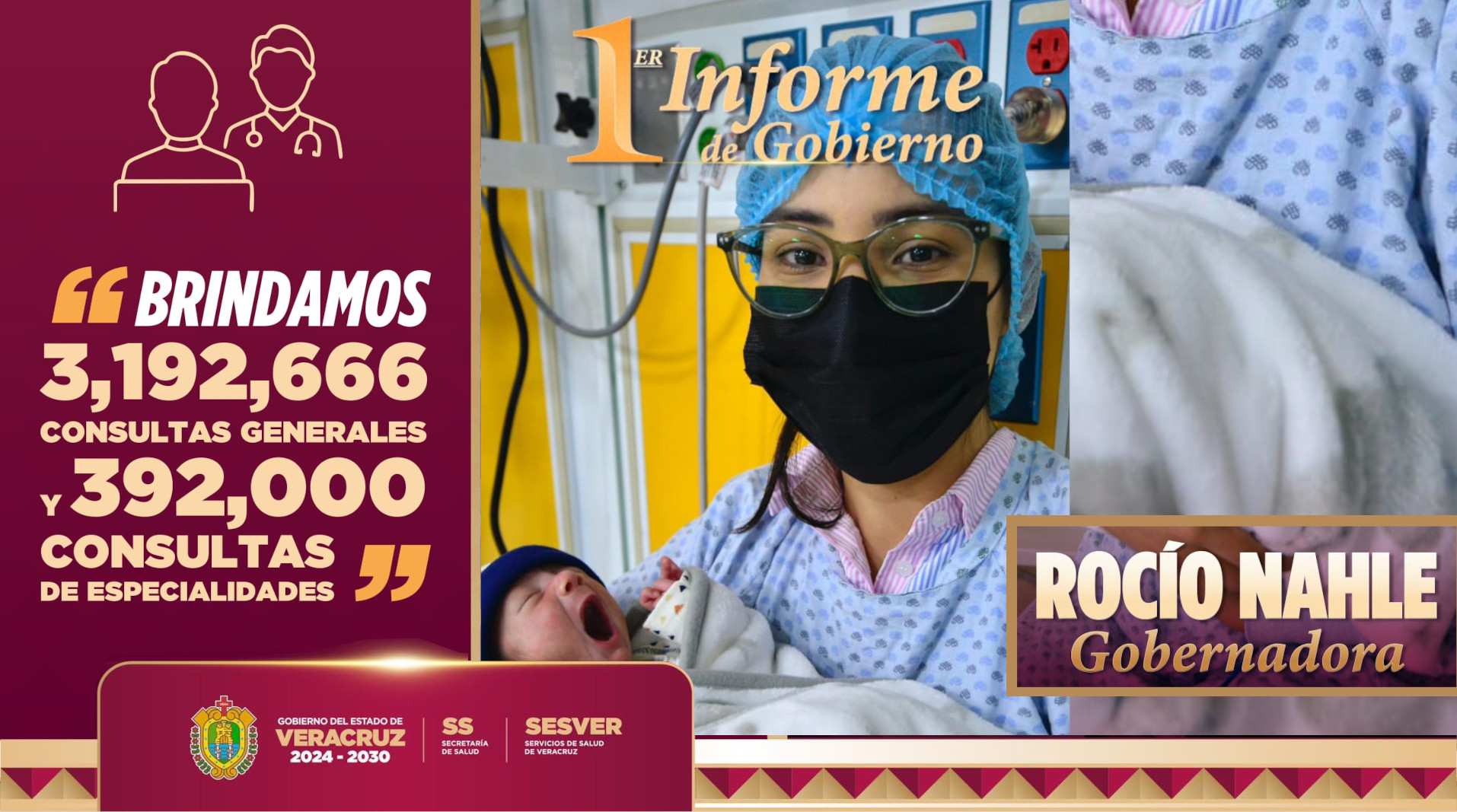 Nuestro compromiso de acercar los servicios médicos a cada familia veracruzana con más de 3 millones de consultas generales, permitiendo que la población reciba valoración médica oportuna en unidades de primer contacto.