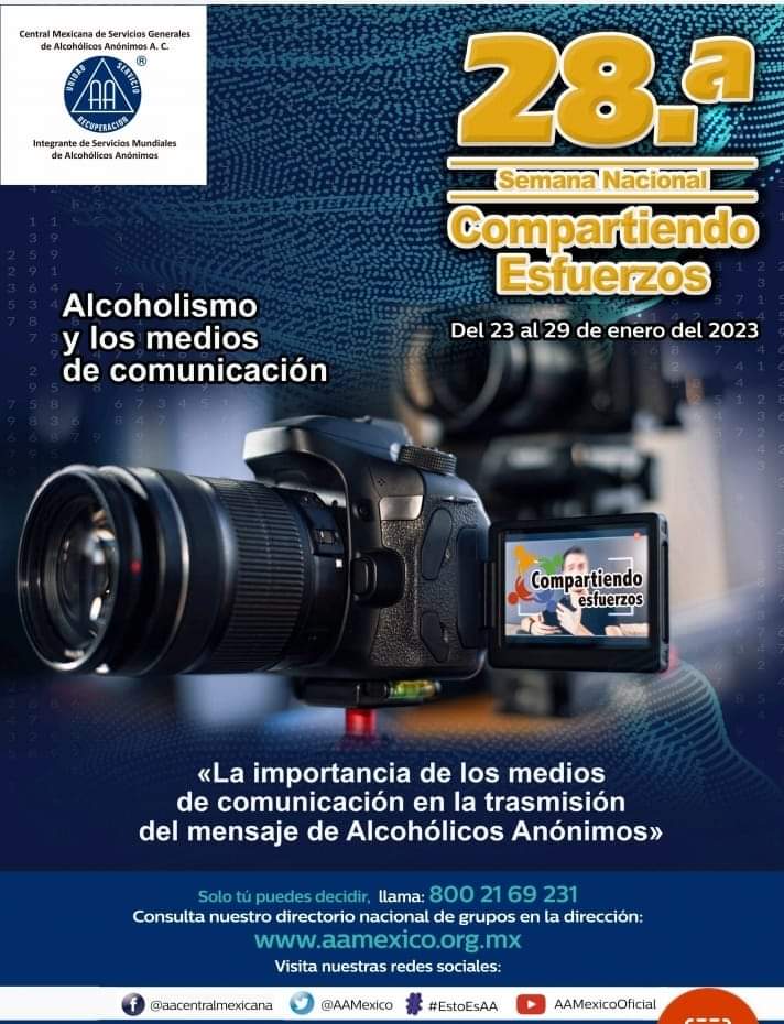 Hace 24 años se firmó un convenio a nivel nacional entre la Secretaría de Salud y la Central Mexicana de Alcohólicos Anónimos para que en la tercera semana de enero de cada año se conmemore la Semana Nacional «Compartiendo Esfuerzos», en donde se instalan módulos de información por parte de la Central Mexicana de Alcohólicos Anónimos en todo el país.