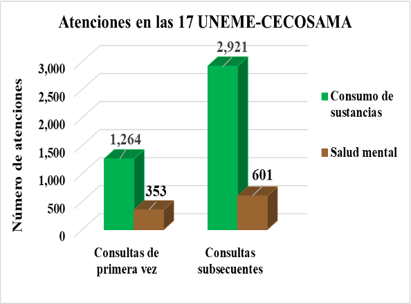 A continuación, presentamos los datos correspondientes a las atenciones brindadas a los usuarios de los UNEME-CECOSAMA por “droga de inicio” y “droga de impacto”.
