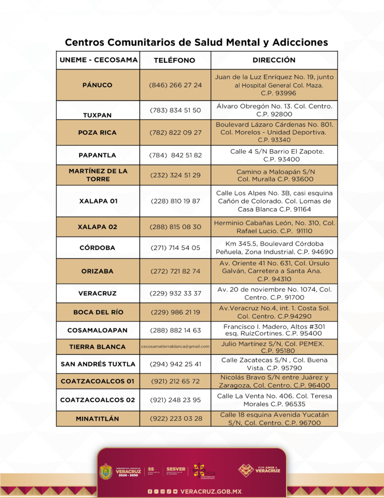 Los Centros Comunitarios de Salud Mental y Adicciones (CECOSAMA) son unidades que brindan servicios gratuitos, dirigidos a prevenir y atender el uso y abuso de sustancias psicoactivas y diversas condiciones de salud mental.