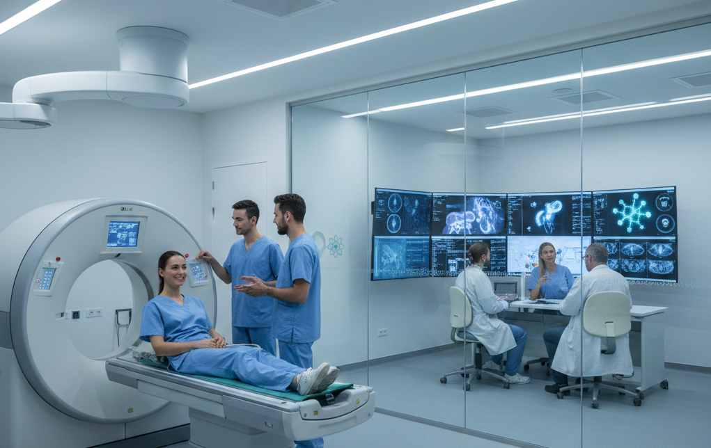 En el Departamento de Medicina Nuclear: Los Servicios de Medicina Nuclear del Centro Estatal de Cancerología (CECAN) es un área especializada en diagnóstico y tratamiento mediante el uso de radiofármacos, que permiten evaluar la función de órganos y detectar enfermedades a nivel molecular. Brinda atención principalmente a pacientes oncológicos, así como a población pediátrica y adultos que requieren estudios funcionales avanzados. Nuestro equipo multidisciplinario trabaja con altos estándares de seguridad radiológica y calidad, contribuyendo a una atención integral y precisa.