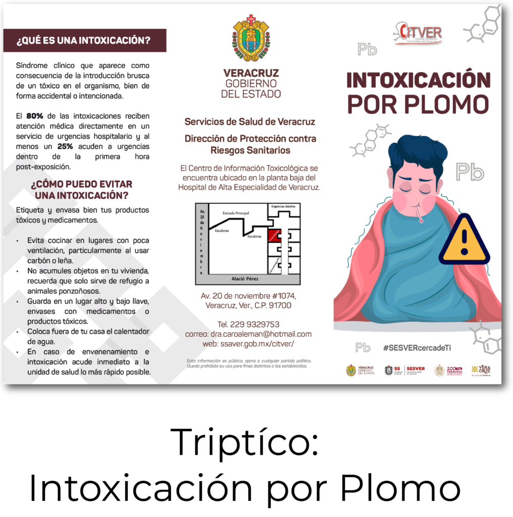 INTOXICACIÓN POR PLOMO PICADURAS Y MORDEDURAS POR ANIMALES E INSECTOS PLANTAS Y PRODUCTOS TÓXICOS EN EL HOGAR TRÍPTICOS CENTRO DE INFORMACIÓN TOXICOLÓGICA DE VERACRUZ