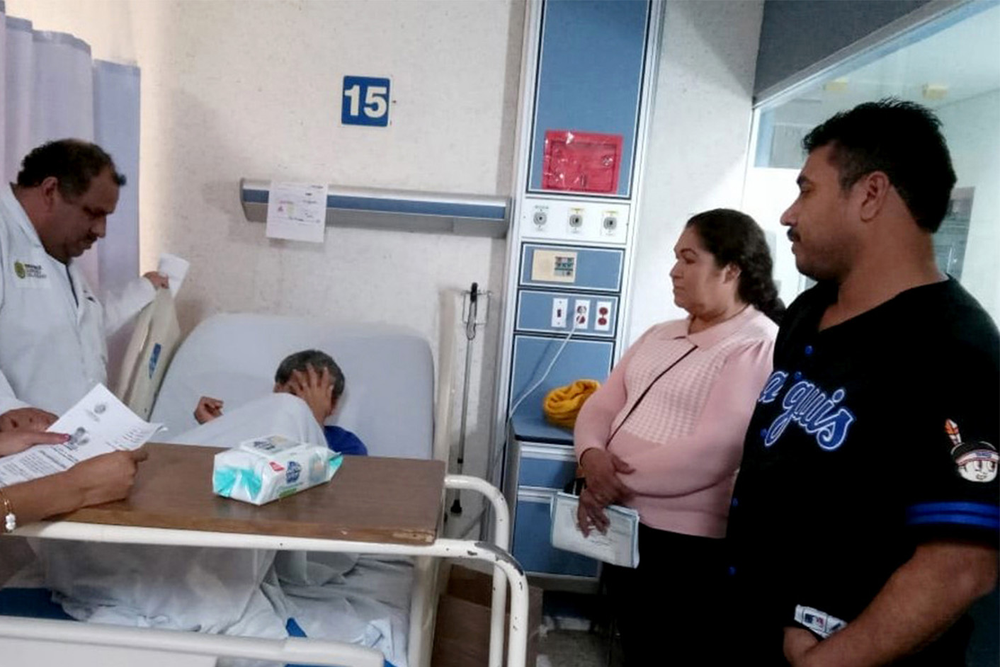 Familiares de Manuel Valenzuela en el hospital donde llegaron para reconocerlo y llevarlo de regreso a su natal Tetabiate, Sonora. Foto. Secretaria de Salud de Veracruz.