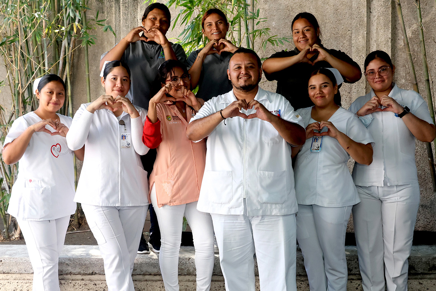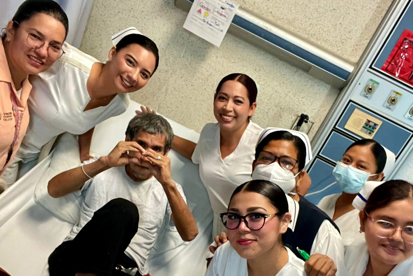 Enfermeras y trabajadoras sociales del hospital general de Cardel sonríen con Valenzuela durante su recuperación que duro más de cuatro meses y durante ese tiempo se ganó el cariño del personal. Foto. Secretaria de Salud de Veracruz.