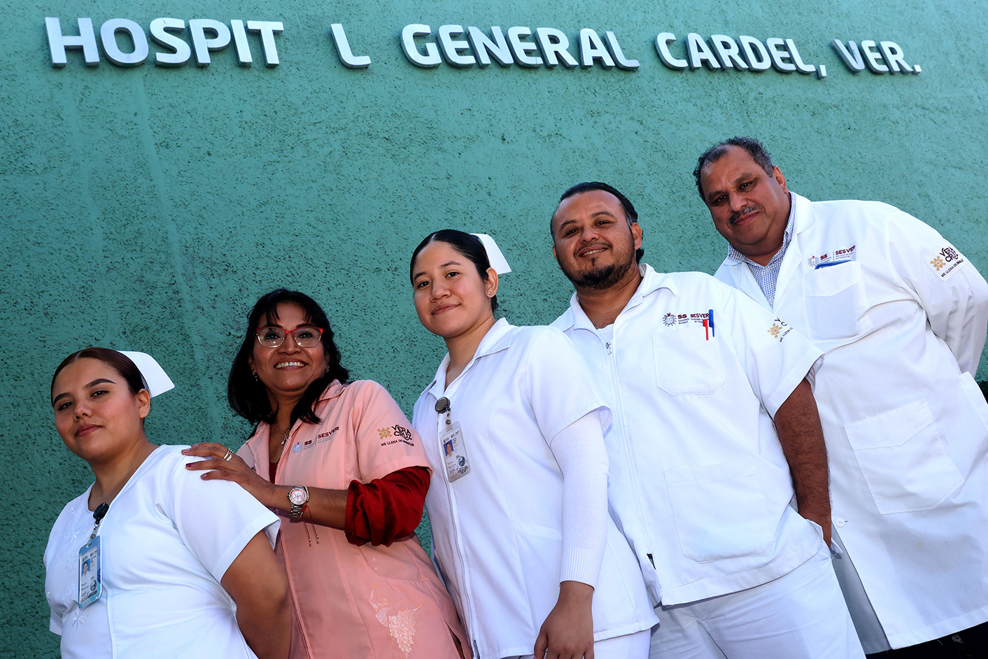 Personal del hospital general de Cardel que ayudo a la mejoría de Manuel Valenzuela envían un saludo y felicitaciones deseándole pase una linda navidad y un excelente año nuevo junto a su familia. Foto Jorge Serratos. Secretaria de Salud de Veracruz.