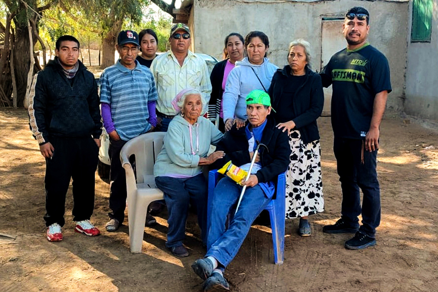 Manuel Valenzuela posa para una foto familiar en su natal Tetabiate , Sonora después de 16 años que se encontraba perdido y fue localizado gracias a personal de trabajo social del hospital general de Cardel, quienes se dieron a la tarea de buscar a sus familiares después de que el sufriera un accidente en calle. Foto proporcionada por la familia.