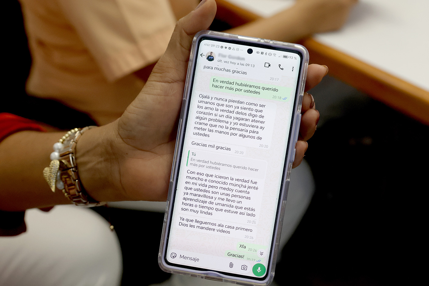 La trabajadora social muestra un mensaje de agradecimiento de la hermana de Manuel Valenzuela por todas las atenciones que tuvieron con el y por ayudarlo no solo a recuperar su salud, sino también a encontrar a su familia. Foto Jorge Serratos. Secretaria de Salud de Veracruz.