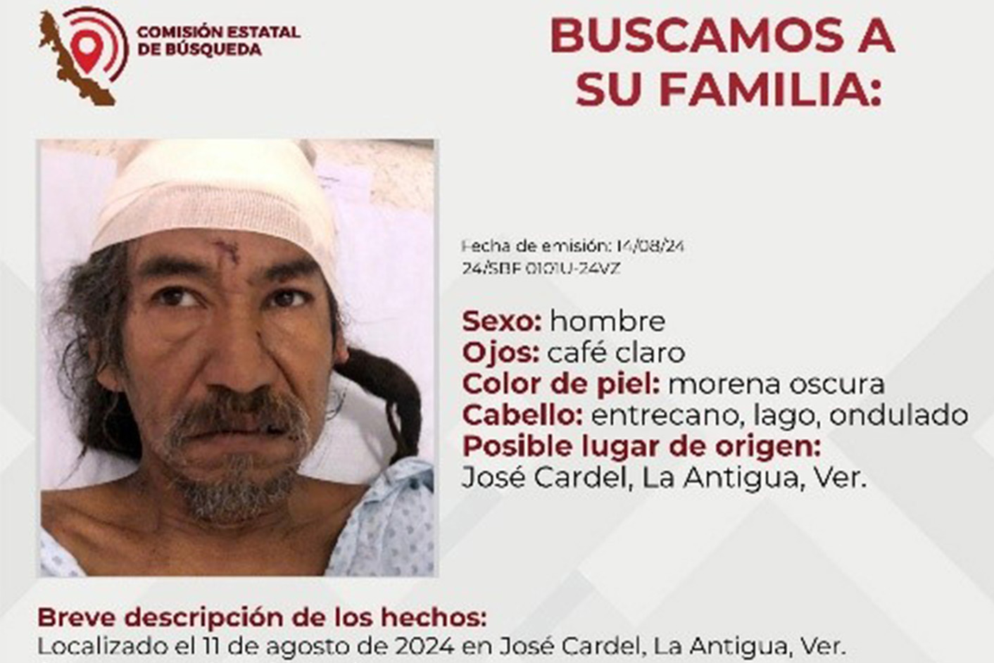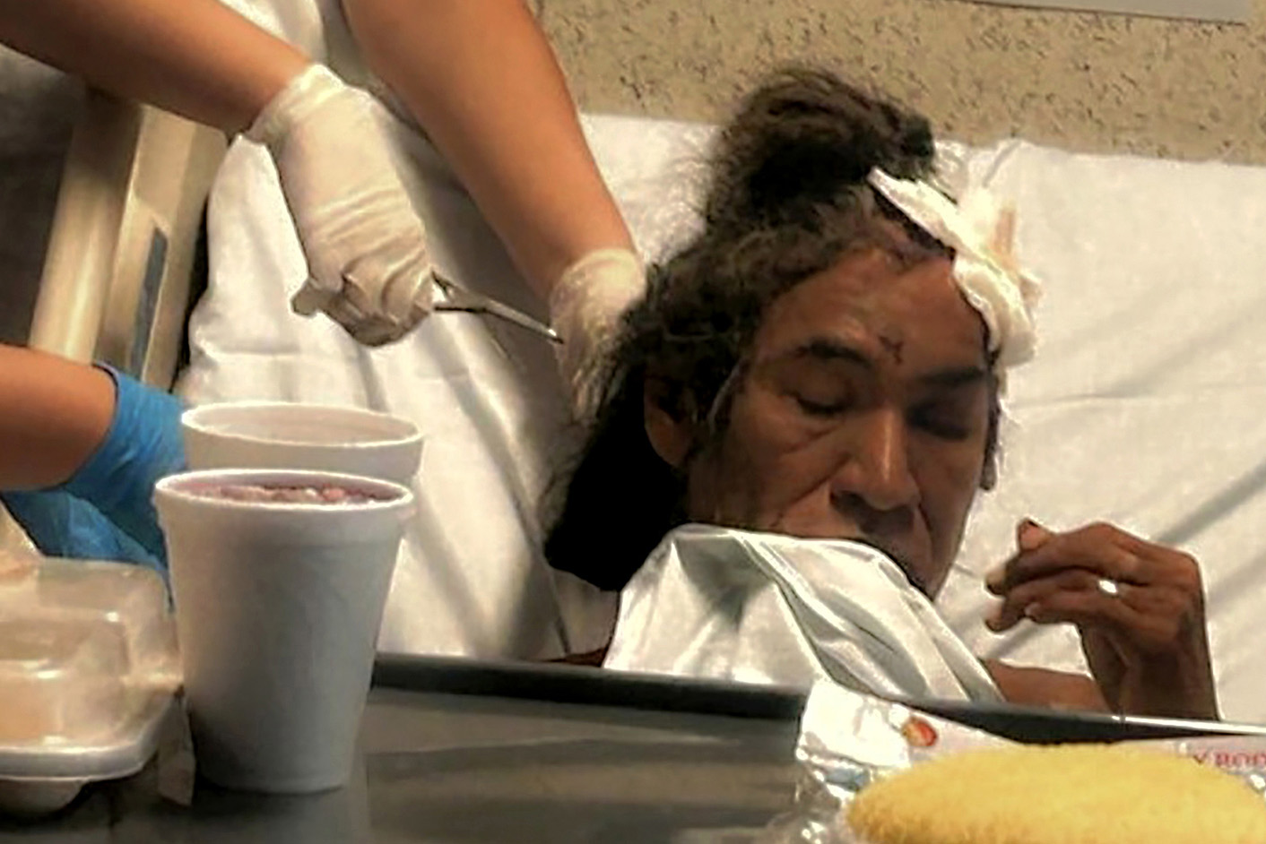 Foto proporcionada por el personal del hospital general de Cardel, donde fue atendido Manuel Valenzuela conocido como “ Jack Sparrow” quien vivía en situación de calle y por un accidente que sufrió lograron localizar a su familia en el poblado de Tetabiate-Sonora. Foto. Secretaria de salud de Veracruz.