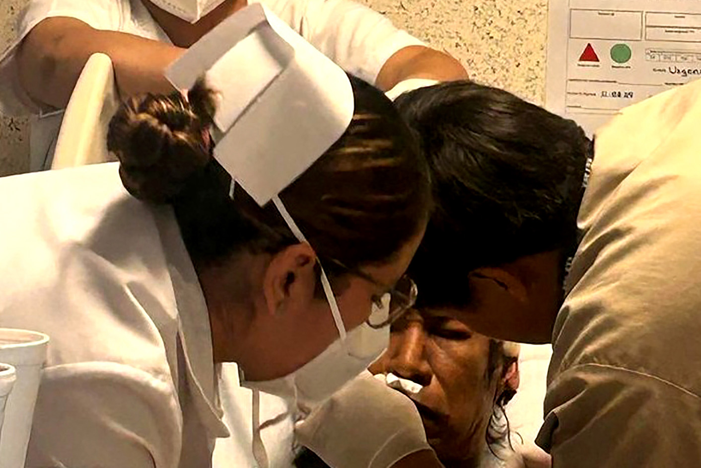 Las pasantes de enfermería Yoselin Yhoana Rojas y Maria Jose fueron parte del equipo que ayudo en la recuperación de Manuel Valenzuela conocido como el “Black Sparrow “ de Cardel. Foto Jorge Serratos. Secretaria de Salud de Veracruz.