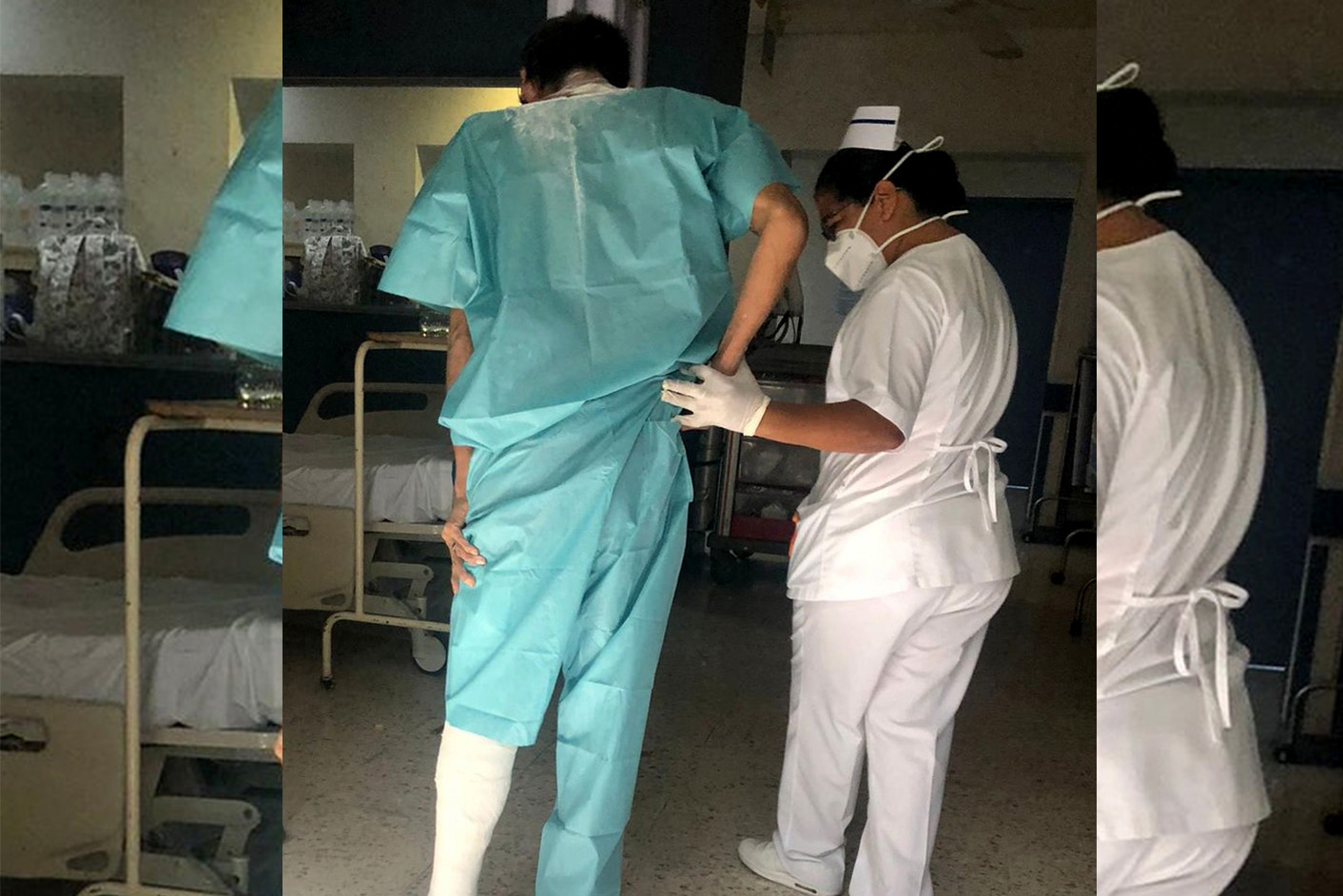 Fotos proporcionadas por el personal del hospital general de Cardel durante la asistencia a Manuel Valenzuela después que sufriera el accidente. FOTO. Secretaria de Salud de Veracruz.