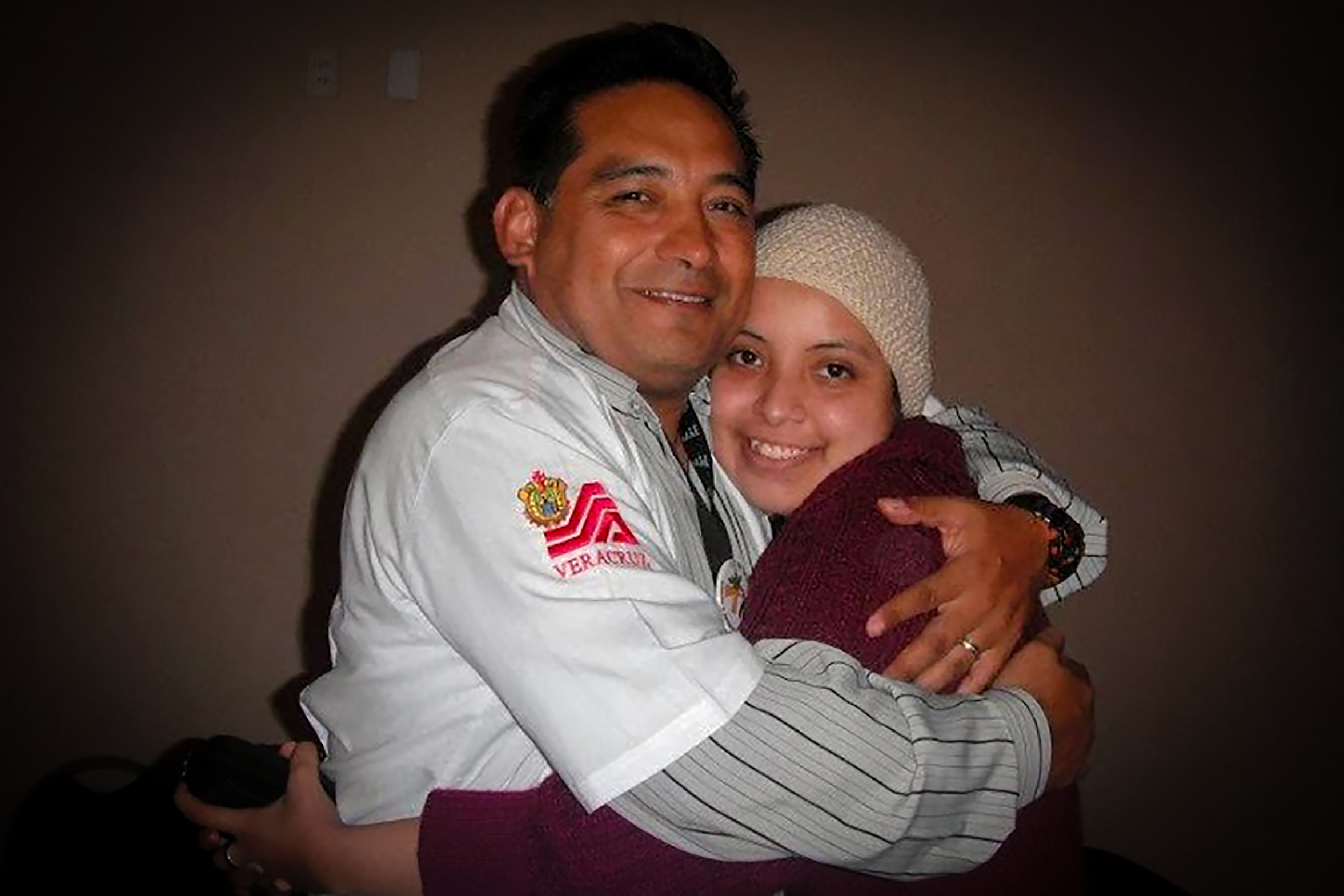 • Magali fue una niña muy apreciada en el “CECAM” centro estatal de cancerología, en la foto se encuentra a brazada por el doctor Jorge Neri Días Morales. Foto Cortesía Magali Martínez.