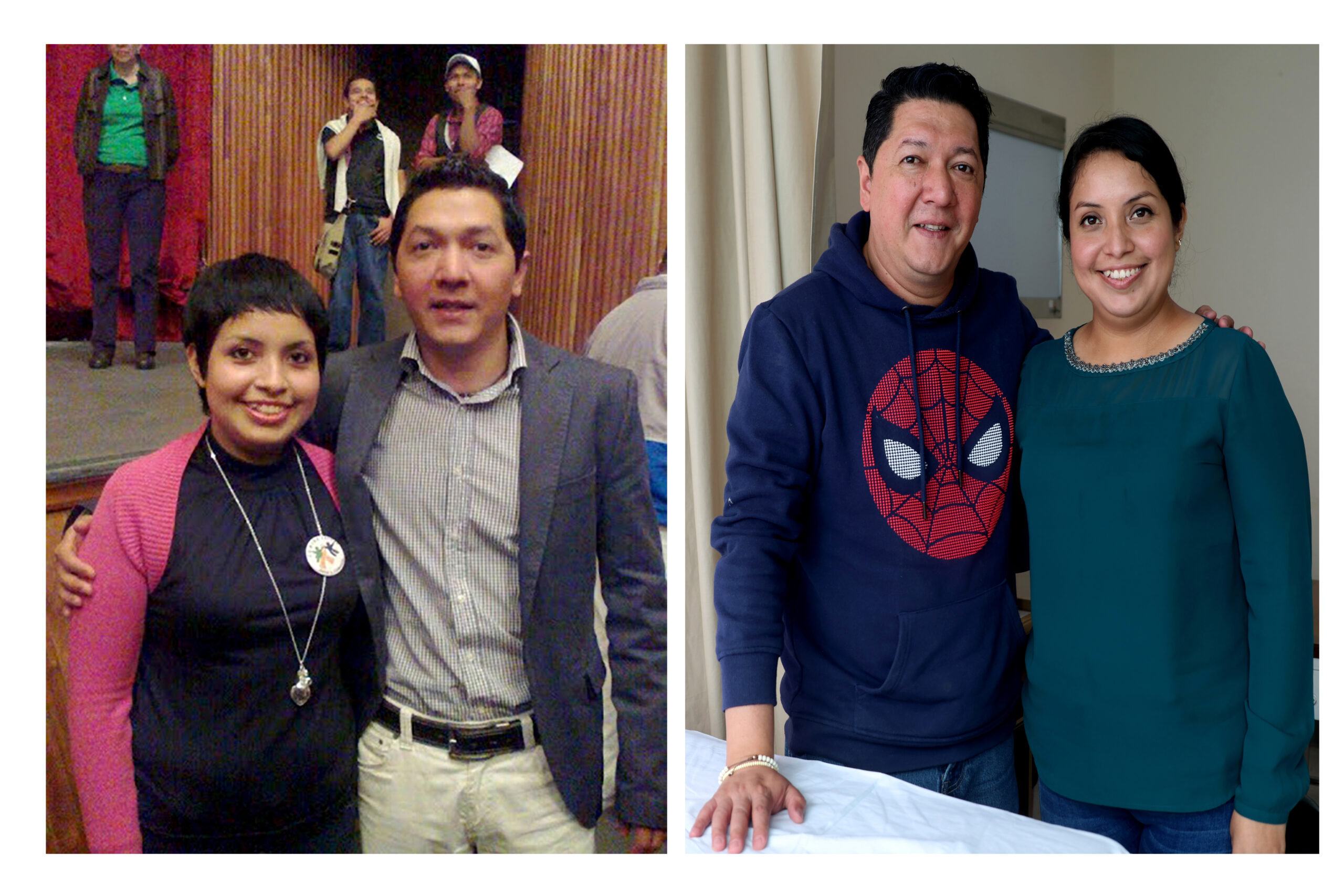• Magali en una foto a sus 17 años y una actual con el doctor José de Jesús Loeza Oliva, durante su visita de ella al centro estatal de cancerología en diciembre de 2024. Foto Cortesía Magali Martínez.