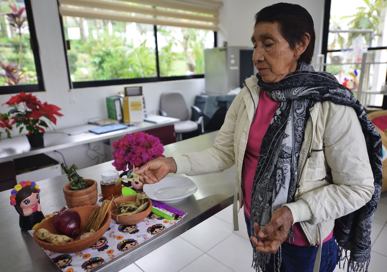 María Sixta Manzanares prepara un remedio para enfermedades respiratorias. Foto Marco Antonio Pérez Martínez/ Secretaría de Salud.