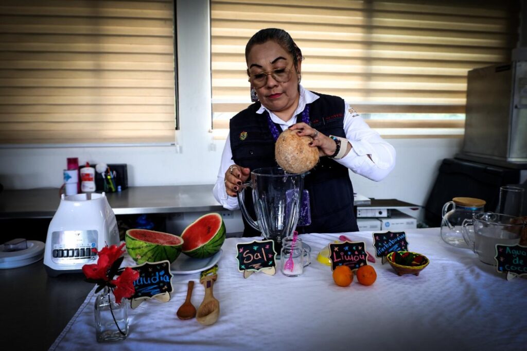 La responsable del programa de Medicina Tradicional, Ruth Areli Hernández Xoliot, informó que este suero, elaborado con ingredientes naturales como agua de coco, sandía, limón, bicarbonato, sal y hierbabuena, contribuye a la rehidratación y fortalecimiento del sistema gastrointestinal, particularmente en casos de deshidratación leve o trastornos digestivos.