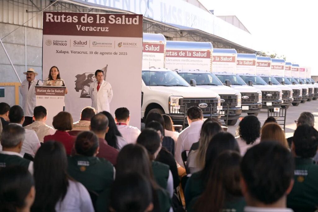 Xalapa, Ver., martes 19 de agosto de 2025.- El Gobierno de México puso en marcha el programa Rutas de la Salud, estrategia nacional de distribución de medicamentos que tiene su origen en Veracruz, donde la gobernadora Rocío Nahle García implementó el modelo de las Camionetitas de la Salud.