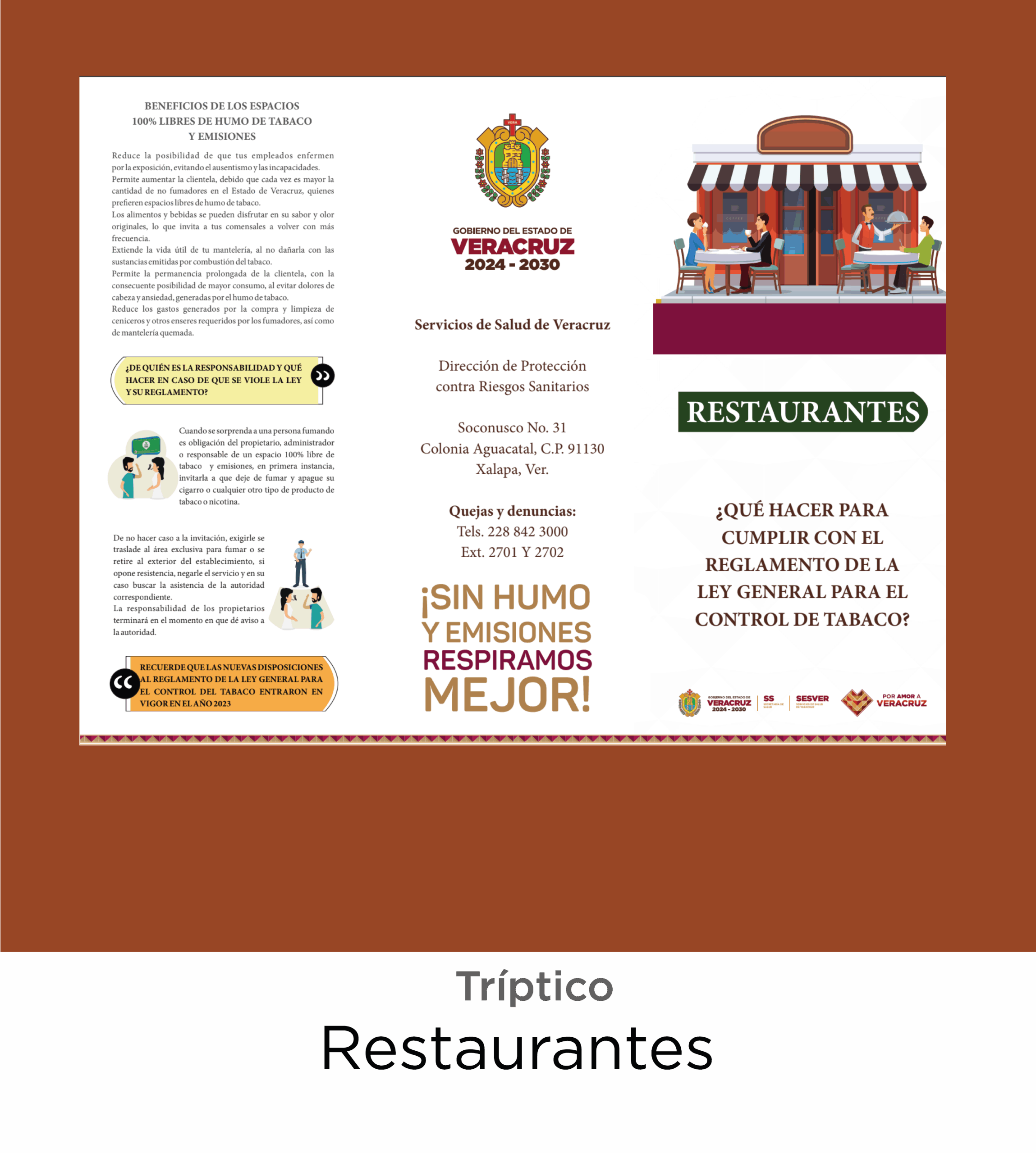 Propietarios, administradores, encargados o responsables de establecimientos de los diversos giros establecidos en el art. 13 de la Ley No. 327 de la Protección a los No Fumadores en el Estado de Veracruz de Ignacio de la Llave y de los definidos en la Ley General para el Control del Tabaco como espacios 100% libres de humo de tabaco y emisiones (DOF: 17/02/2022). Fumadores, los cuáles deben identificar plenamente los lugares en donde está prohibido fumar y respetar el espacio 100% libre de humo de tabaco. Servidores Públicos, que también se consideran como responsables de las acciones. Población en general que puede estar expuesta al humo de tabaco.