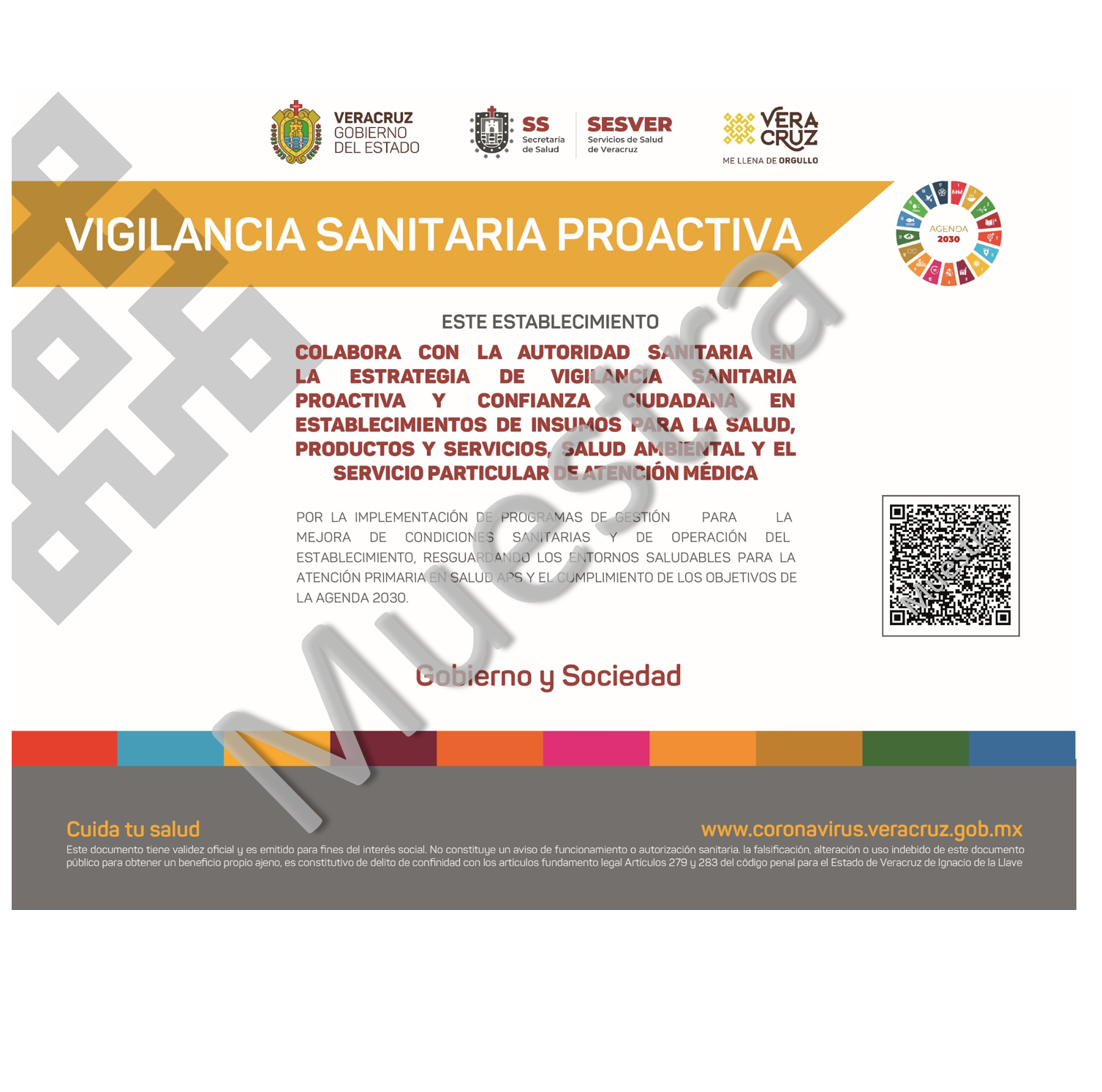 Aviso de Privacidad: Integral de propietarios (persona física o persona moral), representantes legales, responsables sanitarios y testigos de establecimientos, productos y servicios sujetos a Vigilancia Sanitaria. La Secretaría de Salud de Veracruz, es el responsable del tratamiento de los datos personales que nos proporcione. Los datos personales que recabamos de usted, los utilizaremos para las siguientes finalidades: a) contar con un padrón de establecimientos, b) elaborar estadísticas, c) análisis de riesgos, d) Vigilancia Sanitaria, e) seguimiento de procedimientos y f) proyectos gubernamentales. Del mismo modo se informa que no se utilizan sus datos personales para finalidades adicionales. Para mayor información acerca del tratamiento y de los derechos que puede hacer vale, usted puede acceder al aviso de privacidad integral a través de la dirección electrónica:
