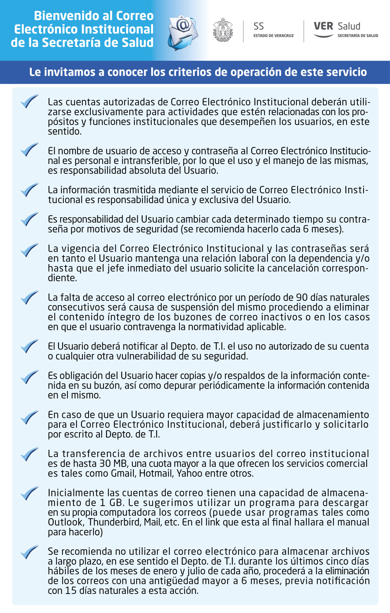 - Criterios de operación de correo electrónico de SESVER